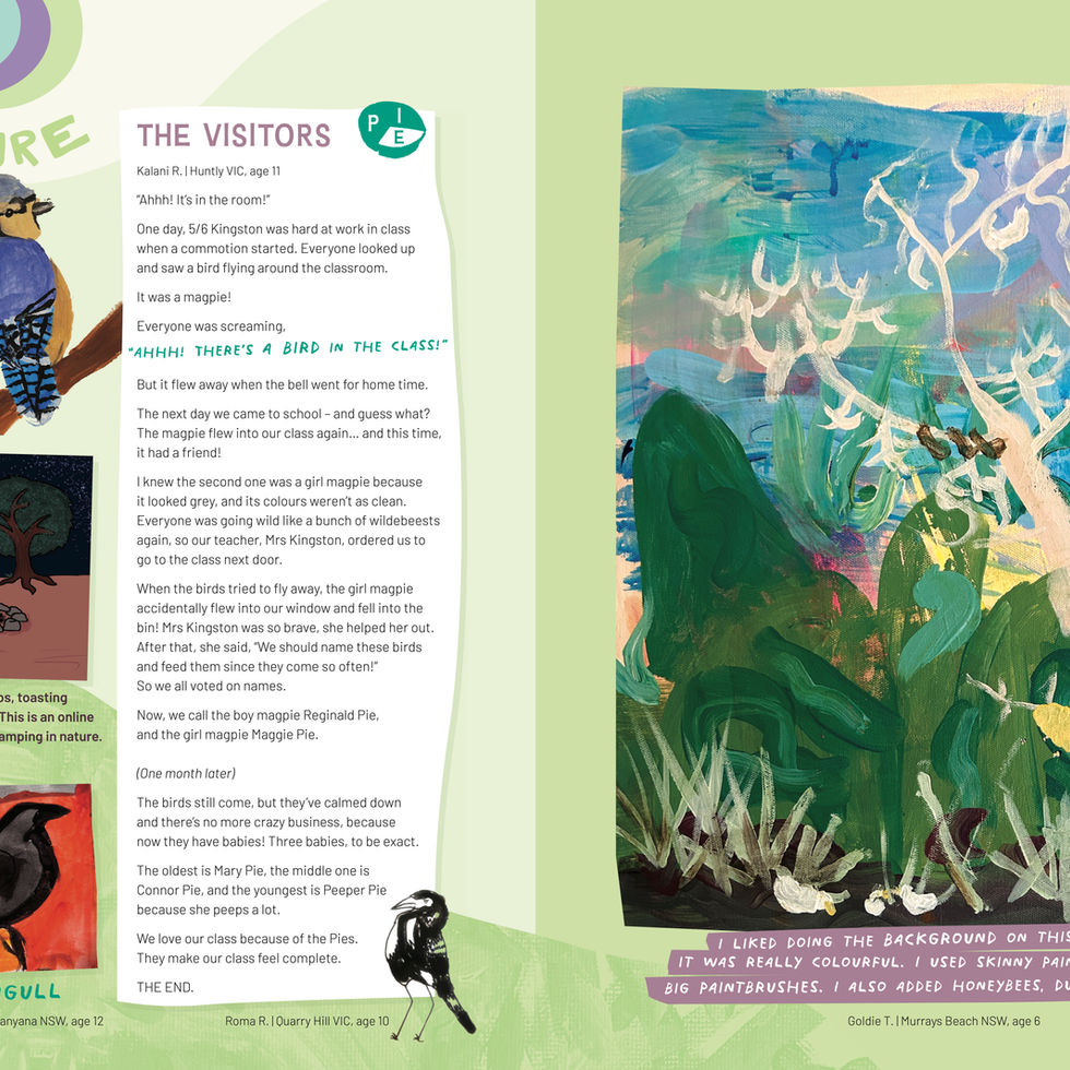 It features close to 400 creations from Aussie kids. From art to writing, jokes to photography - this mag is packed with a whole bunch of high-interest topics, ready to inspire your learner. Get ready for an epic tale of how to live life without wifi, oh so many birds and portraits, a lost pangolin and lots of facts about Aussie animals.